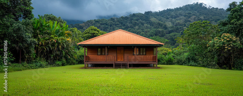 environmental conservation with forest preservation and nature reserves. Ranger station in the heart of a lush, preserved nature reserve