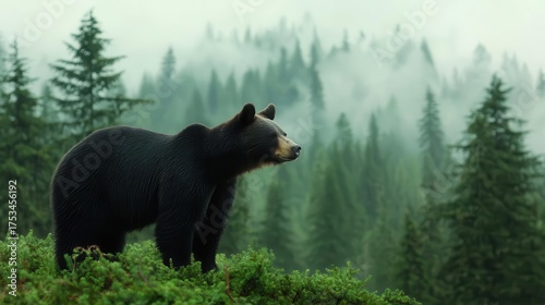 Bear sighting in sequoia forest, wild nature storytelling concept
