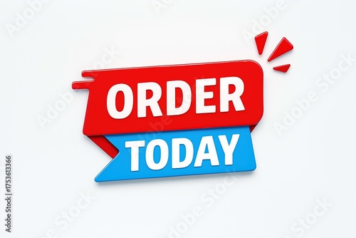 Bright red and blue banner with the words order today in white text perfect for sales and promotions