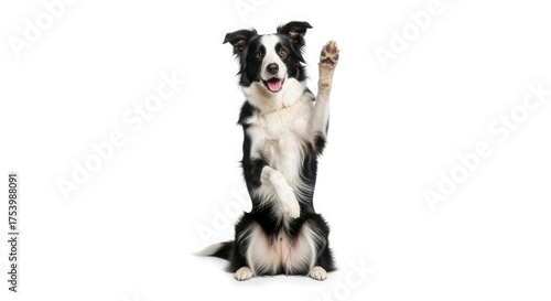 Border collie dog pet animal canine puppy breed domestic mammal portrait cute happy playful paw up isolated