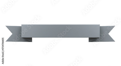 Ribbon banner, curve badge, label, title box, clip art, png isolated on transparent background. A gray banner with folded edges, isolated on a white background, suitable for text overlay.