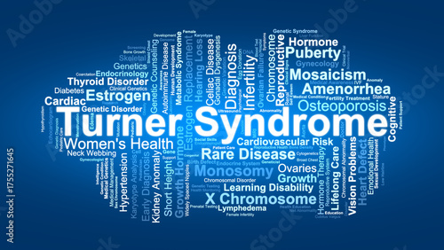 Turner Syndrome Word Cloud. Key Concepts On X Chromosome Abnormality, Female Development, Infertility, Hormonal Therapy, And Genetic Health Awareness.