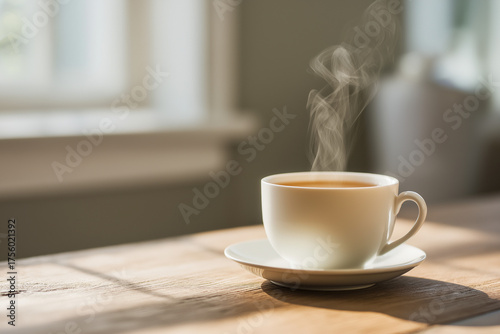 湯気が立ちのぼる温かい紅茶のリラックスタイム モーニングルーティーン