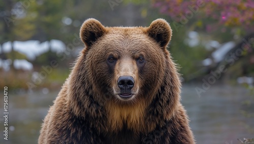 Detailed Headshot of a Brown Bear (Ursus arctos) in a Marshy Area During Springtime