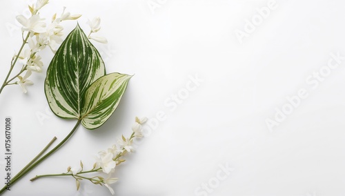 Variegated Aspidistra Elatior Leaf on White Background with Floral Theme and Copy Space