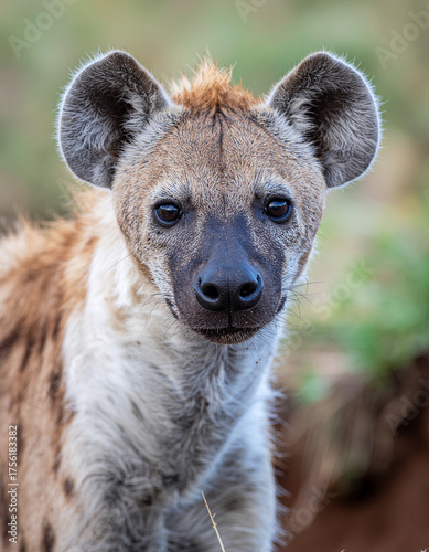 hyena in the serengeti national park tanzania africa, Close-up Portrait of a Spotted Hyena in the Wild