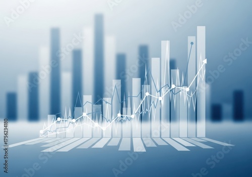 Abstract financial chart with rising bar graph and stock market line graph showing growth and success in business