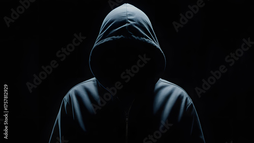 Mysterious figure cloaked in shadow, their identity obscured by a dark hooded jacket, creating an aura of intrigue and suspense.