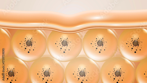 Detailed View of Adipose Tissue and Fat Cells Under the Skin