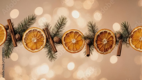Festive Holiday Garland with Dried Oranges and Cinnamon Sticks.