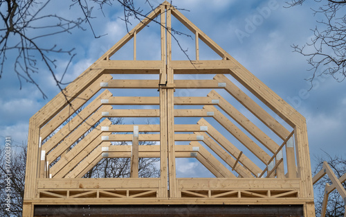 drewniana konstrukcja dachu w trakcie budowy