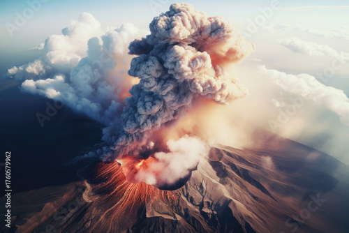 赤い溶岩と噴煙を上げる活火山の壮大な噴火シーン