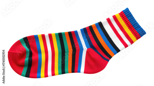 Glossy Crimson Striped Sock with Transparent Background, 3D Realism Design Element