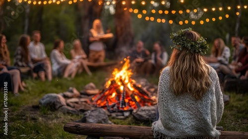 Friends at midsummer bonfire.
