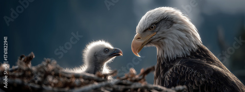 Banner of Majestic Bald Eagle with Adorable Nestling in Nature's Serene Setting
