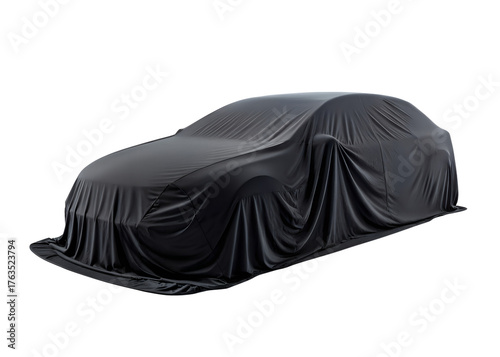 A dark fabric car cover conceals a vehicle s shape suggesting anticipation or protection isolated on transparent background