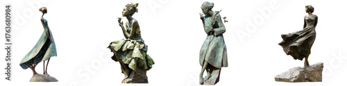 elegant bronze sculptures depicting graceful female figures on transparent background
