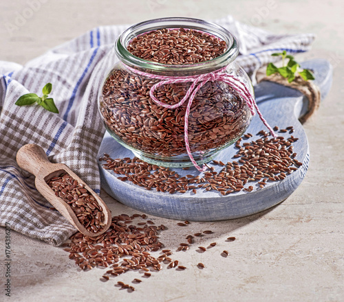 Siemię lniane w szklanym okrągłym słoiku