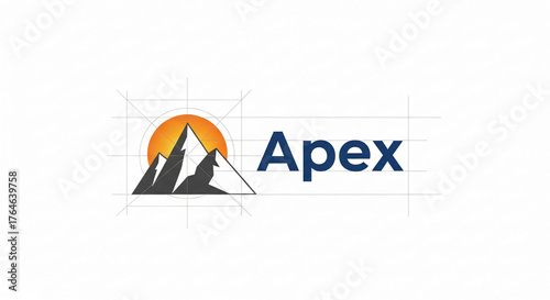 Stylized mountain logo design with sun, representing peak achievement, success, and ambition, ideal for corporate branding or motivational designs