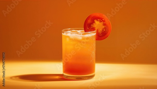 Chilled vegetable drink with tomato garnish in a glass, perfect for menus and dining venues