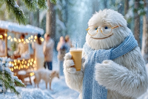 Celebración de Navidad y Año Nuevo en un bosque invernal con un personaje amigable