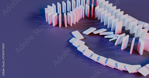 Domino Effect Concept: Chain Reaction of Falling Dominoes. 3d rendering