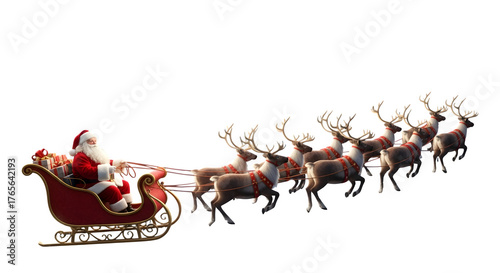 Santa Claus and Reindeer Sleigh, isolated on transparent background