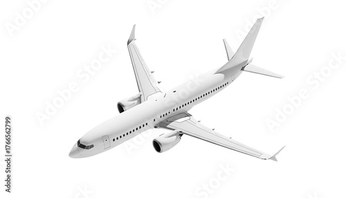 White airplane Boeing 737 Max 737-8 top view high angle isolated on a transparent background. Modern passenger jet airplane.