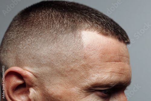Close-up view of a fresh men's haircut showcasing a minimalist style with a clean fade and neat texture, perfect for the modern gentleman