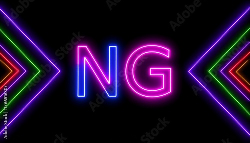 Neon Blue and Pink NG Sign with Purple Chevron Frame 黒背景にネオンのグラデーション「NG」サイン デジタルイラスト