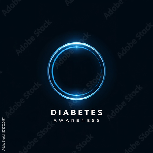 Glowing blue circle symbolizing diabetes awareness and health with dark background