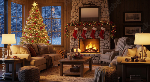 salon avec décorations de Noël