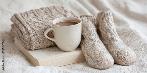 Scandinavian comfort composition featuring soft knit fabric and neutral tones.