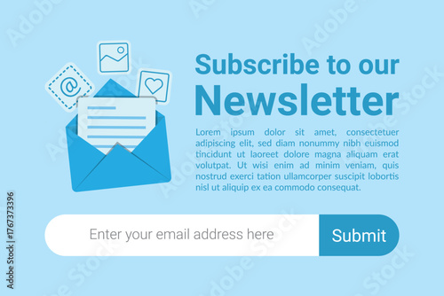 Subscribe to Our Newsletter template with mailbox and submit button for website Vector illustration eps 10