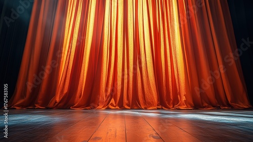 Orange Theater Curtain | High-Drama Effect | Stage/Film Set with Text Space