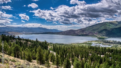 View of the Twin Lakes in Colorado. Hike up Mount Elbert, one of the Fourteeners. Near the historic village of Leadville. Fantastic views of the surrounding Rocky Mountain landscape.High quality photo