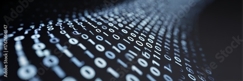 Series of binary numbers are shown in a black and white image