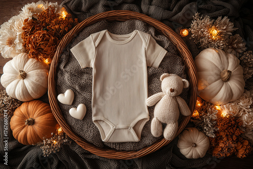 Fall Boho Pregnancy Announcement with Onesie and Pumpkins