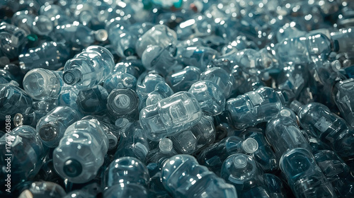 Close-up of Pile of Plastic Bottles for Recycling. Massive pile of transparent plastic bottles ready for recycling.
