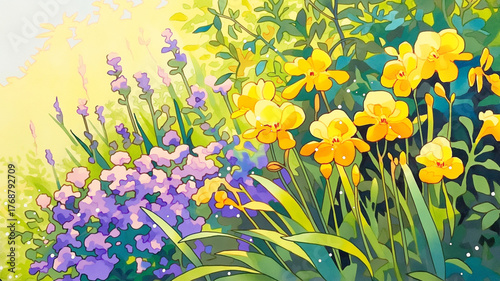 春の陽気と花々が彩るイラスト|新生活など多様な用途にマッチする明るく洗練された素材