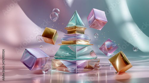 Abstrakte Glasformen in Bewegung – moderne festliche Komposition mit Licht und Farbe