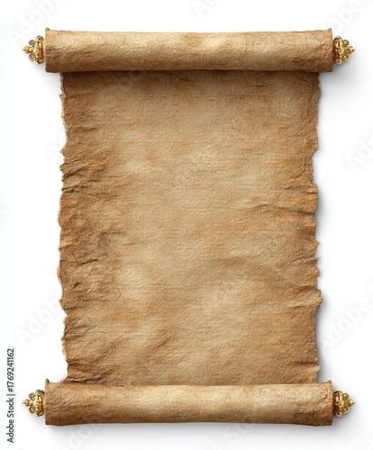 Pergamena arrotolata con bordi irregolari, mostrando una texture antica e un aspetto invecchiato, ideale per evocare un senso di storia e mistero.