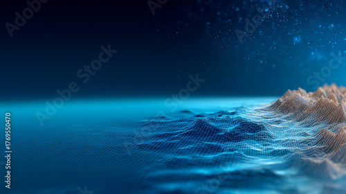 3d ocean map nautical sea chart line background pattern. Radar sonar digital marine depth grid topology GPS 3D wireframe submarine. Scientific bathymetry oceanography elevation data analysi 74168907 1