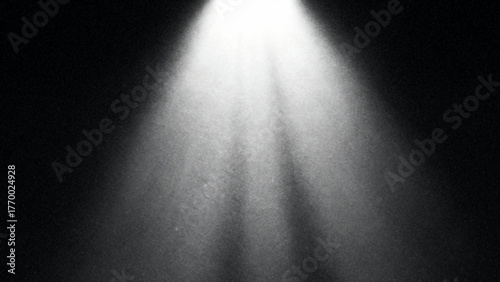 Bright white spotlight beam illuminating downwards through darkness creating dramatic atmospheric light rays and shadows