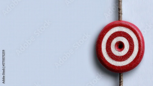 Red and White Circular Target Shape on Twine Against a Soft Blue Background for Concept Visuals