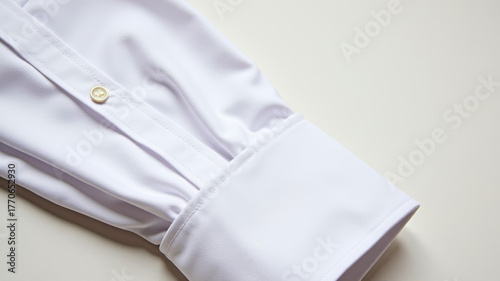 White shirt folded with visible cuffs and buttons on plain background for sewing prep