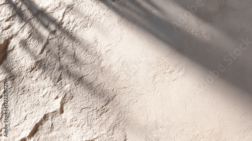 Textured light-colored surface with dappled shadows from overhead foliage, creating an abstract natural pattern.