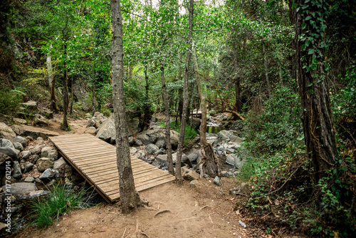 A wooden bridge over a small river on a way to Caledonia waterfall near Platres, Cyprus