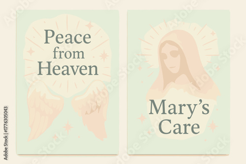 Celestial Peace Banners. Celestial Peace. Two vertical A6 banners with safe margins, centered composition, no elements touching edges, pastel, mint and pink,