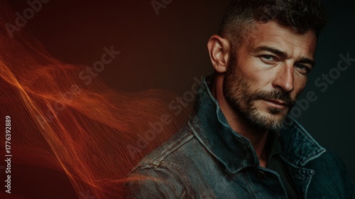 Embodying style and confidence: the charisma of the modern man. Network communication. Subtle hues of life: a joyful man's portrait with a shift in colors and style. Data transmission.